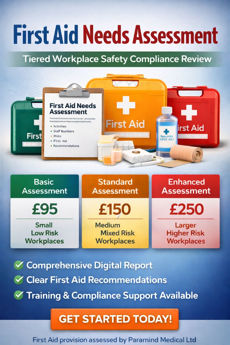Paramind Medical Ltd provides structured, professional First Aid Needs Assessments designed to be simple, efficient, and proportionate to your business. Our tiered approach ensures that you only pay for the level of assessment you actually need.